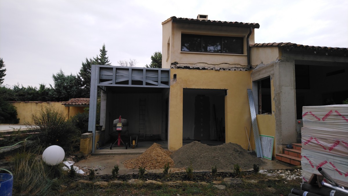 Le projet porte sur la modification d’une maison individuelle. La maison est composée de plusieurs bâtiments de hauteur et largeur différentes, implantés au sud sur le terrain.