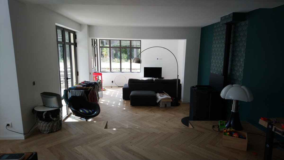 L’extension correspond aux besoins de la famille, qui souhaite profiter au maximum de la végétation dense existante sur le terrain. Le projet propose une extension en structure métallique et toiture terrasse. La création de grandes baies vitrées accentuent le fort lien intérieur-extérieur de la maison.