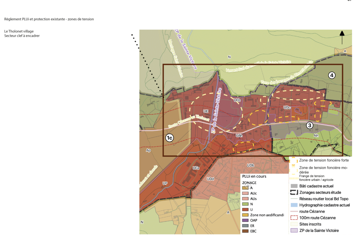 La mission consiste à identifier comment l’outil SPR peut contribuer à préserver le caractère patrimonial exceptionnel des abords de la route de Cézanne, où, pourquoi et comment. L'étude a servi à déterminer, en fonction des protections déjà en place, des politiques de valorisation en vigueur et des enjeux relevés dans chaque commune, si le SPR s’imposait sur une ou plusieurs zones du territoire, sur une ou plusieurs communes notamment au niveau des villages et hameaux anciens du Tholonet et de Beaurecueil. Le SPR ne pouvant couvrir l’ensemble du territoire de l’ancienne ZP, l’équipe a proposé d’autres outils en fonction des caractéristiques des types de paysages rencontrés et a été amenée à définir des zones d’accompagnement orientées sur les outils PLU, OAP ou PDA.