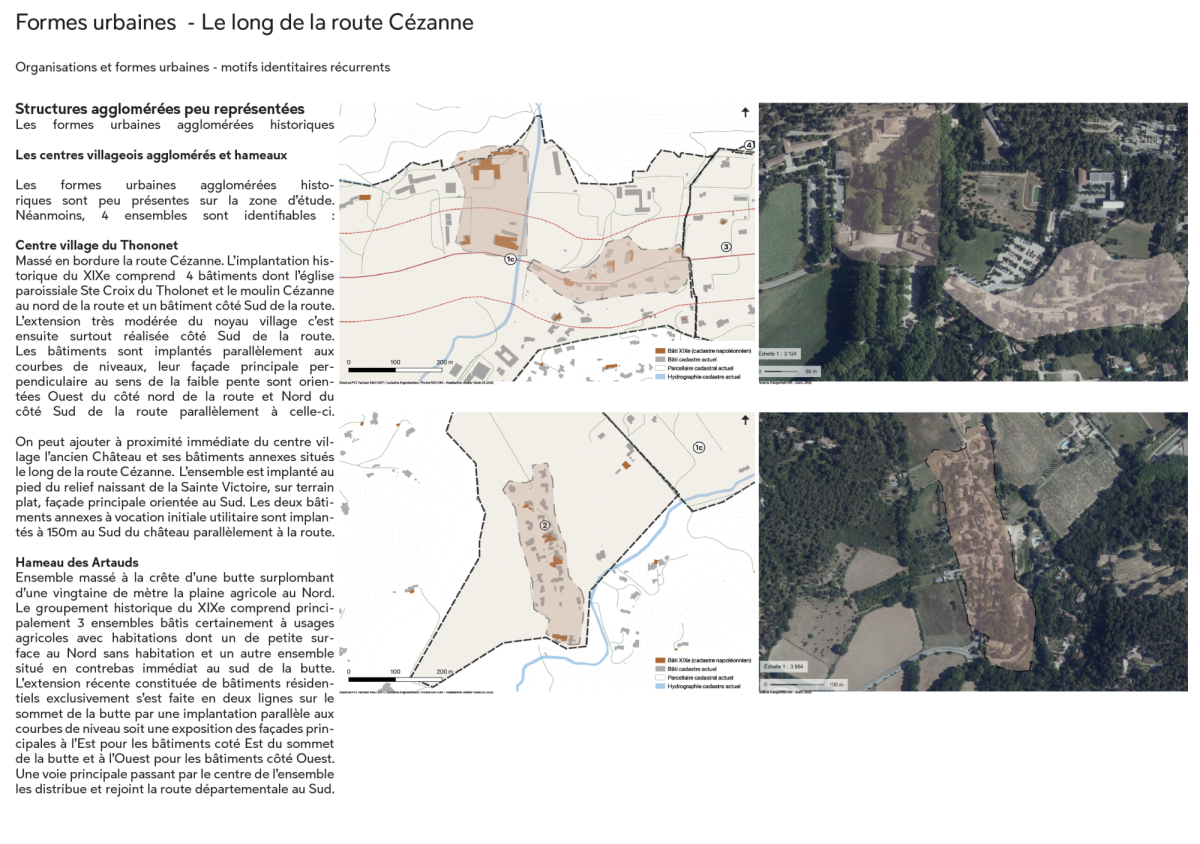 La mission consiste à identifier comment l’outil SPR peut contribuer à préserver le caractère patrimonial exceptionnel des abords de la route de Cézanne, où, pourquoi et comment. L'étude a servi à déterminer, en fonction des protections déjà en place, des politiques de valorisation en vigueur et des enjeux relevés dans chaque commune, si le SPR s’imposait sur une ou plusieurs zones du territoire, sur une ou plusieurs communes notamment au niveau des villages et hameaux anciens du Tholonet et de Beaurecueil. Le SPR ne pouvant couvrir l’ensemble du territoire de l’ancienne ZP, l’équipe a proposé d’autres outils en fonction des caractéristiques des types de paysages rencontrés et a été amenée à définir des zones d’accompagnement orientées sur les outils PLU, OAP ou PDA.